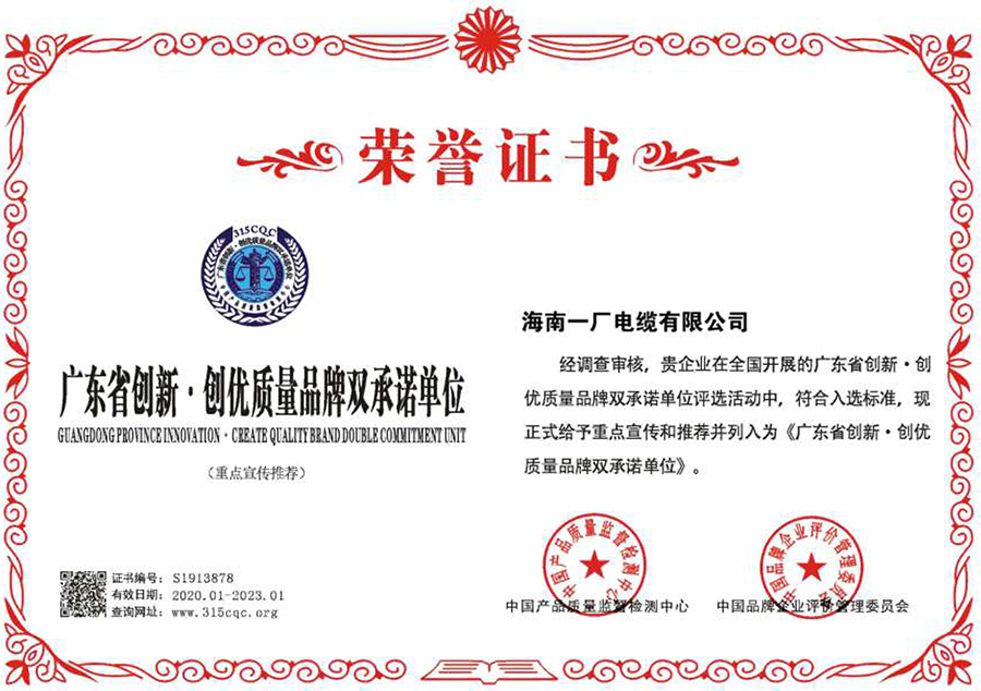 廣東省創(chuàng)新.創(chuàng)優(yōu)質(zhì)量品牌雙承諾單位